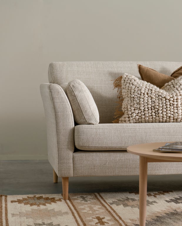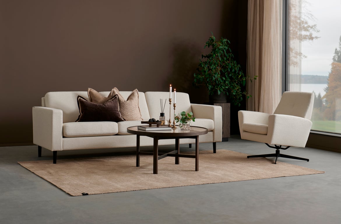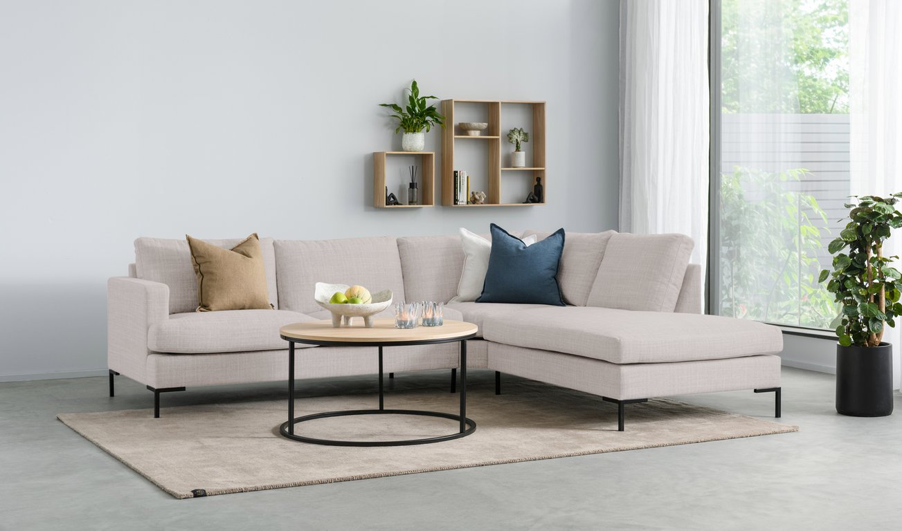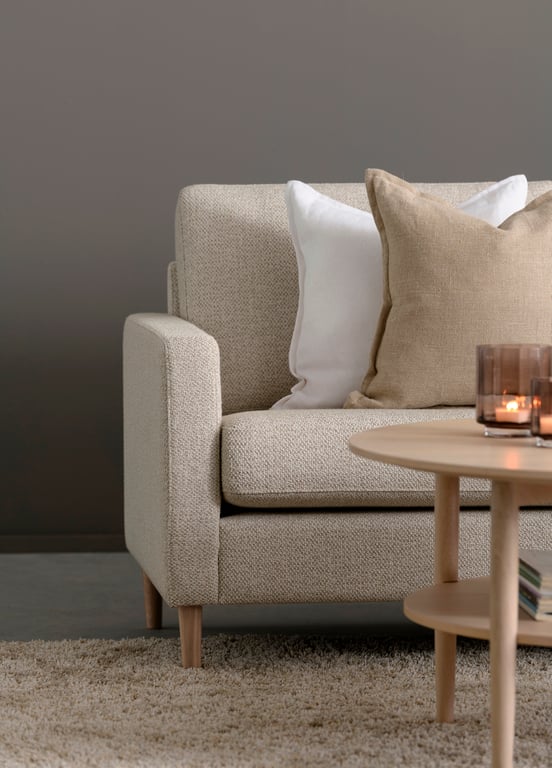 Hjellegjerde Dyp hjørnesofa3,5 seter + hjørne + endemodul, armlen 4, stoff Anabela natural