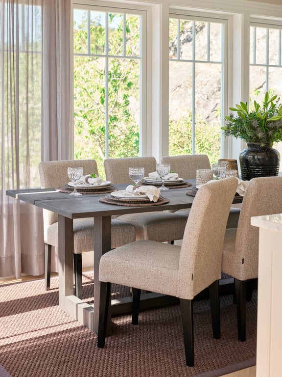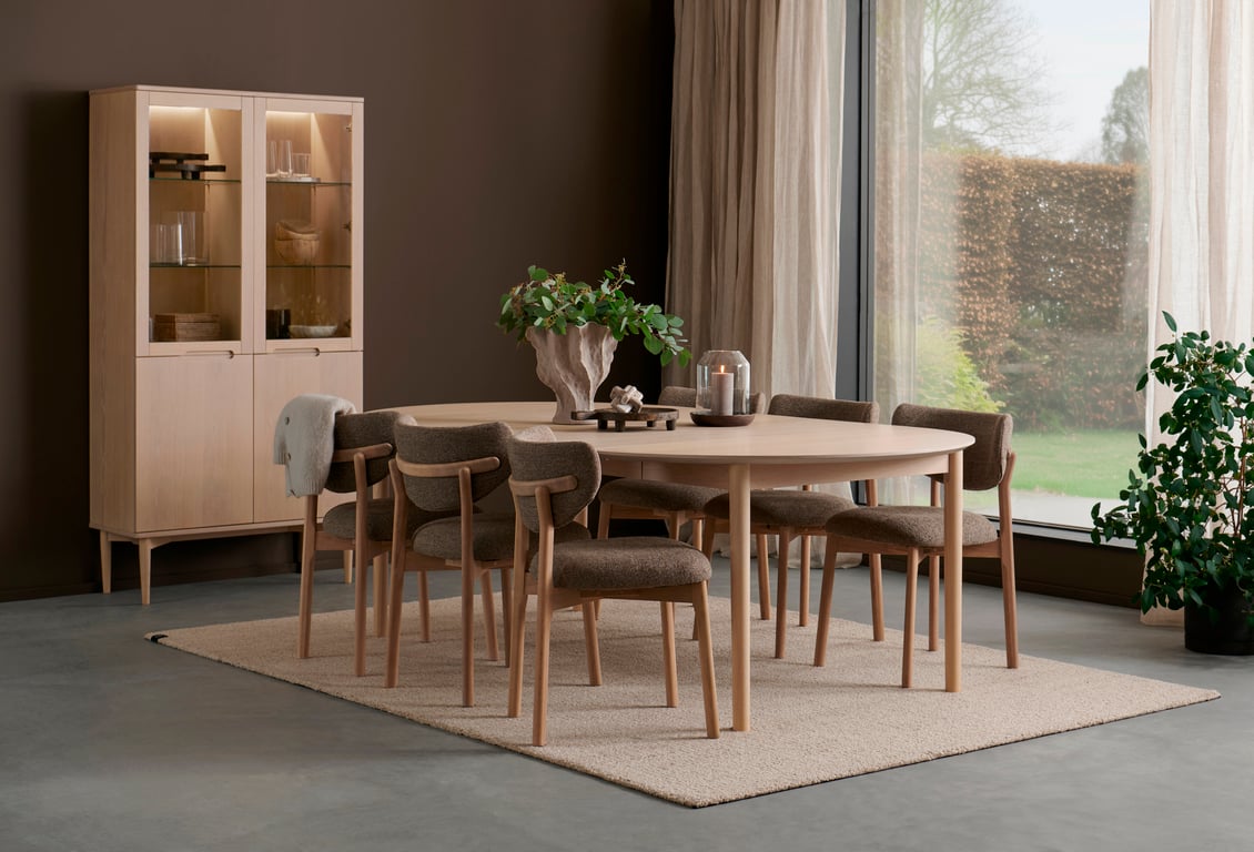 Linea spisebord rundt Ø 138 cm m/uttrekk, hvitoljet