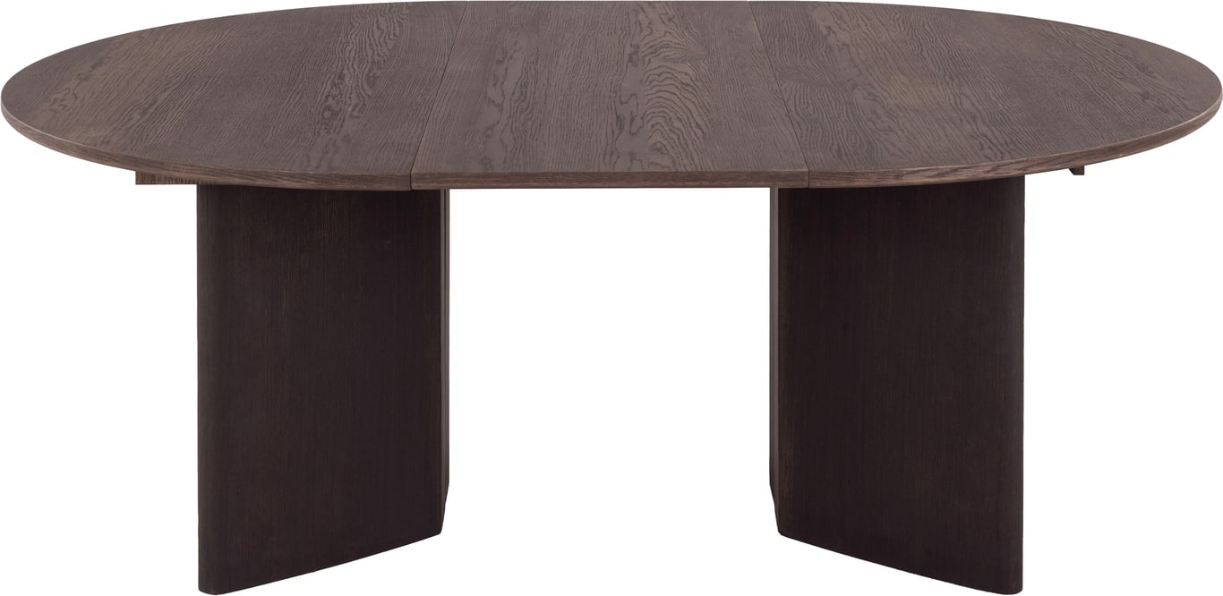 Begge størrelsene har plass til 4 ileggsplater, hver med en bredde på 45 cm. Bordet er laget av finert eik, noe som gir en naturlig og holdbar overflate. Kommer i flere trefarger og to typer understell. Støttebein anbefales ved uttrekk av 3 eller 4 plater. Beregnet plass rundt spisebordet uten ileggsplate er 6-8 stykk. Du kan beregne 2 stk ekstra personer rundt bordet per ileggsplate, avhengig av størrelsen på spisestolene dine.