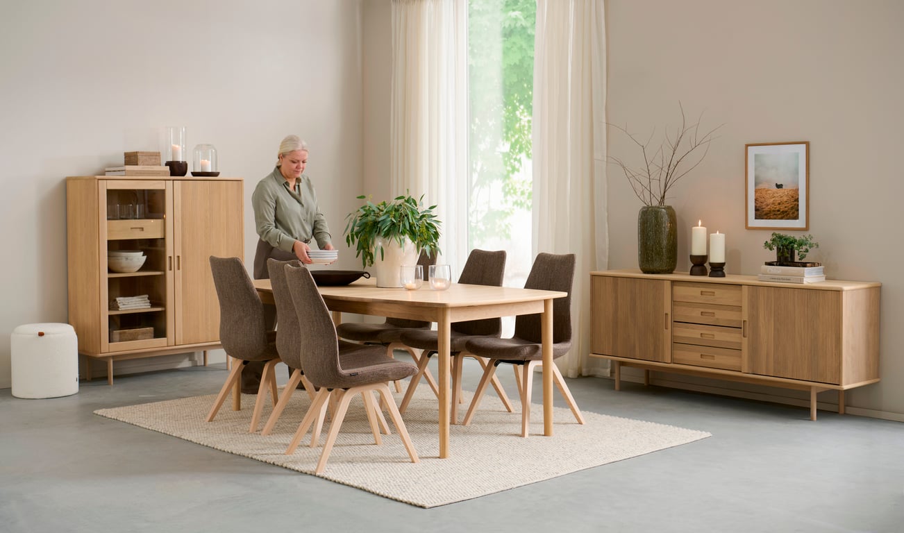 Berlin spisebord 160 - 240 x 85 cmInkludert butterfly-ileggsplate, hvitoljet eikefiner