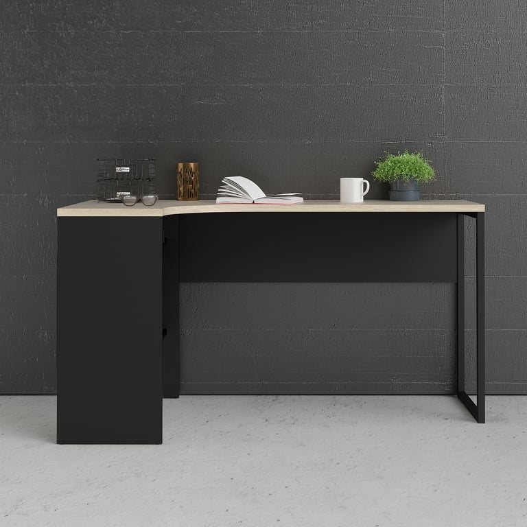 Function plus skrivebordHjørne, matt svart/eikefolie