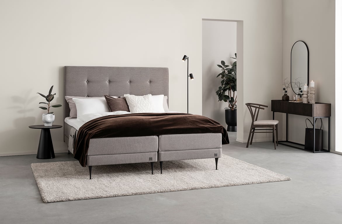 Svane® Mila rammeseng 120x200Moment Ice Grey, Earth Elastec overmadrass,Cone Oak 19cm ben