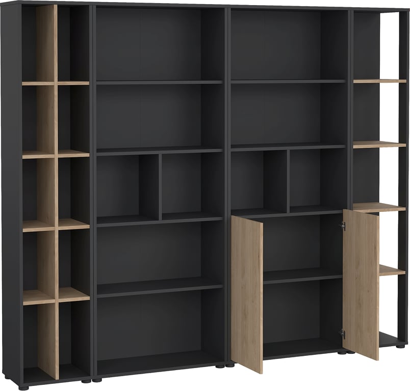 Sign bokhylle reolkombinasjongrå/natur B241 H205 cm