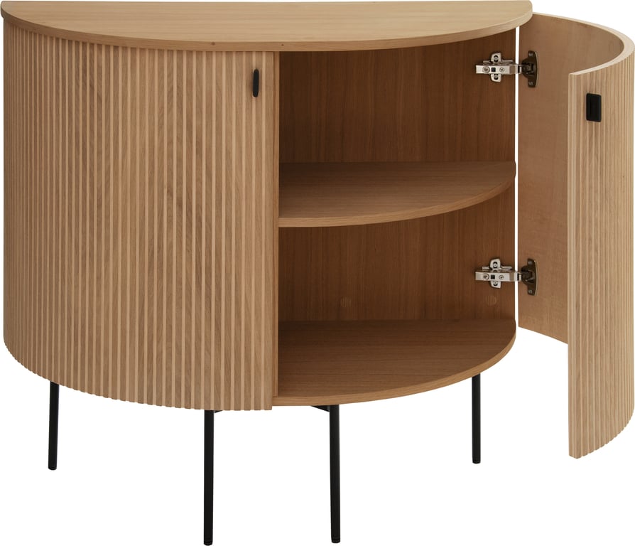 Birk Skjenk 100x74x40 cm med 2 rillede dører, eik / hvit olje