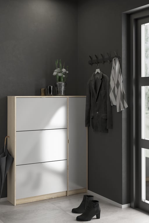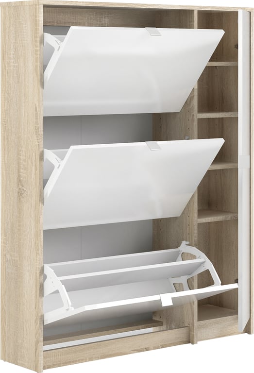Shoes skoskap99 x 24, H 124 cm,eikefolie/hvit høyglans med 3 skuffer