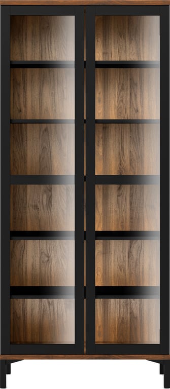 SM420 vitrineskapet, mocca, eik, lakk, har et lett klassisk design. Bruken av spesialdesignede aluminiumsgrep på skapfrontene gjør serien unik. Møbelet fremstår med en lekker kurvet front design. Vitrineskapet inneholder to glasshyller og en trehylle bak 2 glass dører øverst og en trehylle bak 2 tette dører under. Soft-close funksjon i dørene. Hyllen nederst bak de øverste glassdørene er i tre og passer perfekt til oppbevaring av servise, tallerkener og annet bestikk. Vitrineskapet passer til sk