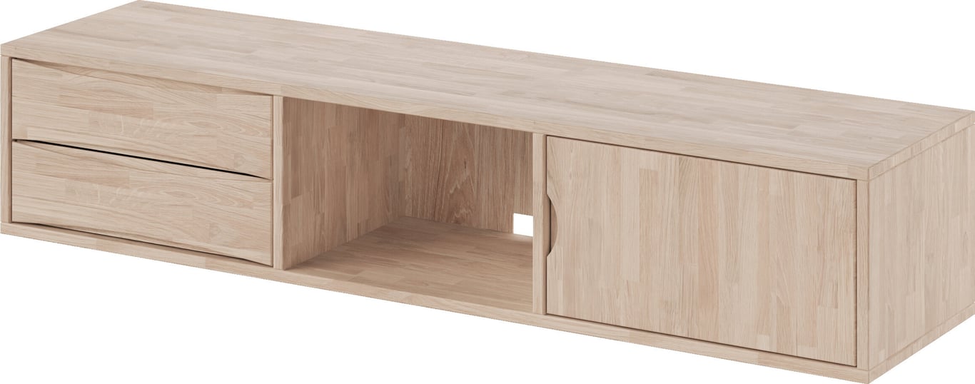 Linden Tv-benk kombinerer stilrent design med praktisk funksjonalitet. Benken er laget av solid heltre eik og har god plass til både tv og medieenheter. Skuffene og døren er utstyrt med soft close-mekanisme for myk og lydløs lukking. Den hvitoljede overflaten gir et moderne uttrykk. Linden tv-benk er en tidløs løsning for stuen din, og en del av vår Linden-serie.