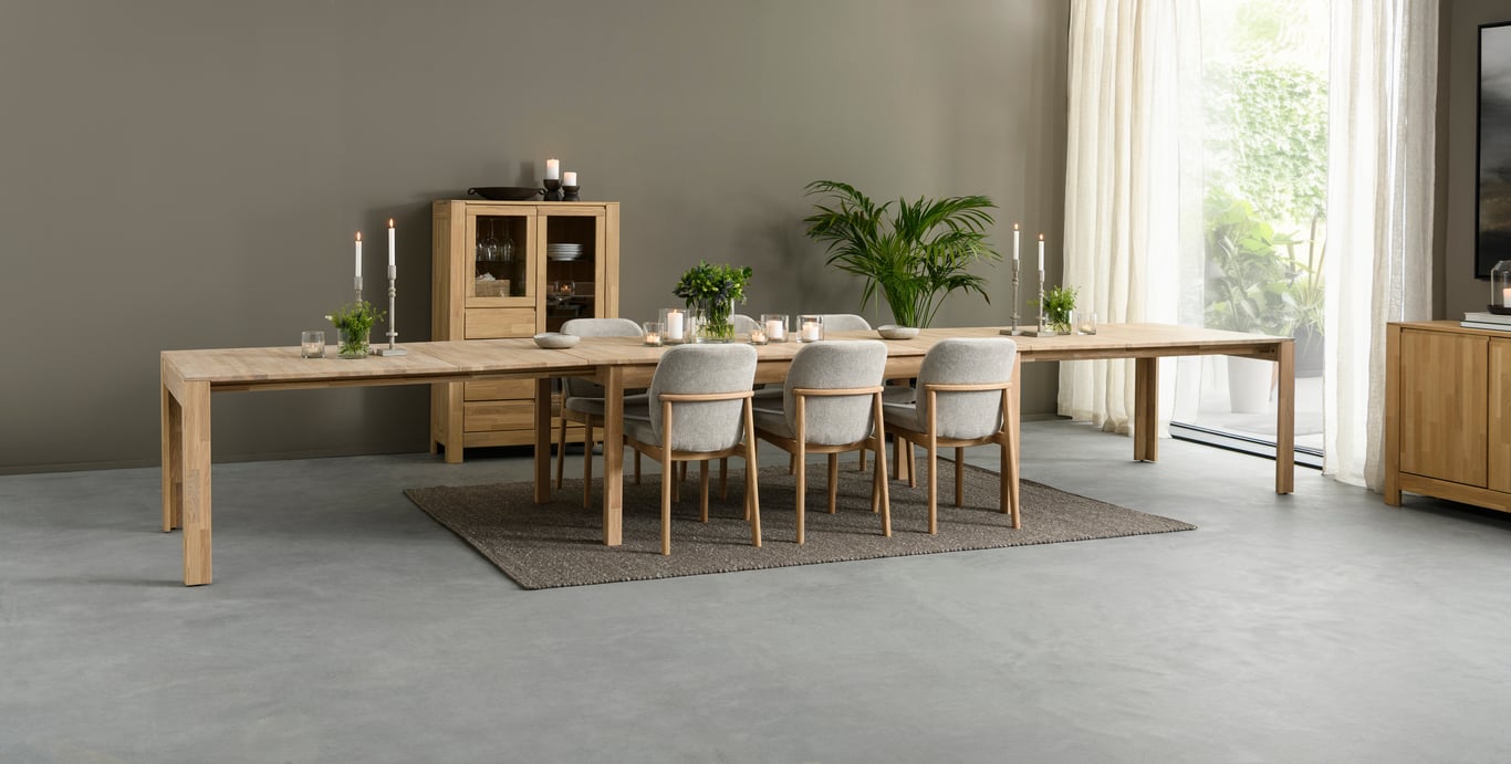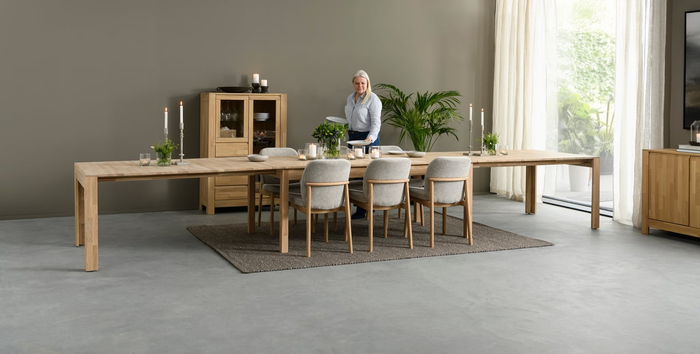 Lugano er en innholdsrik spisestue-serie designet for deg som verdsetter kvalitet og stilrent design. Serien er produsert i heltre eik og treverket gir rommet en god og lun atmosfære.