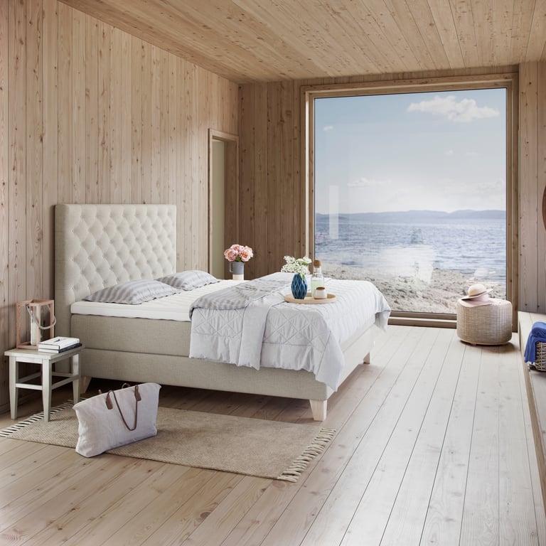 Pris inkl. ben og overmadrass. Sengegavl kommer i tillegg.
