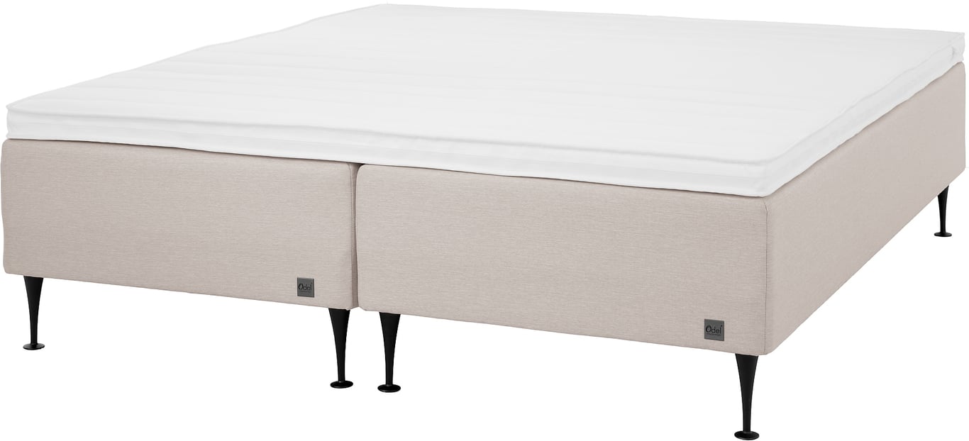 Odel® Foss rammeseng 180x200Tekstil Dovre kritt, medium+fast liggekomfort, inkludert Odel 35 overmadrass og sengeben