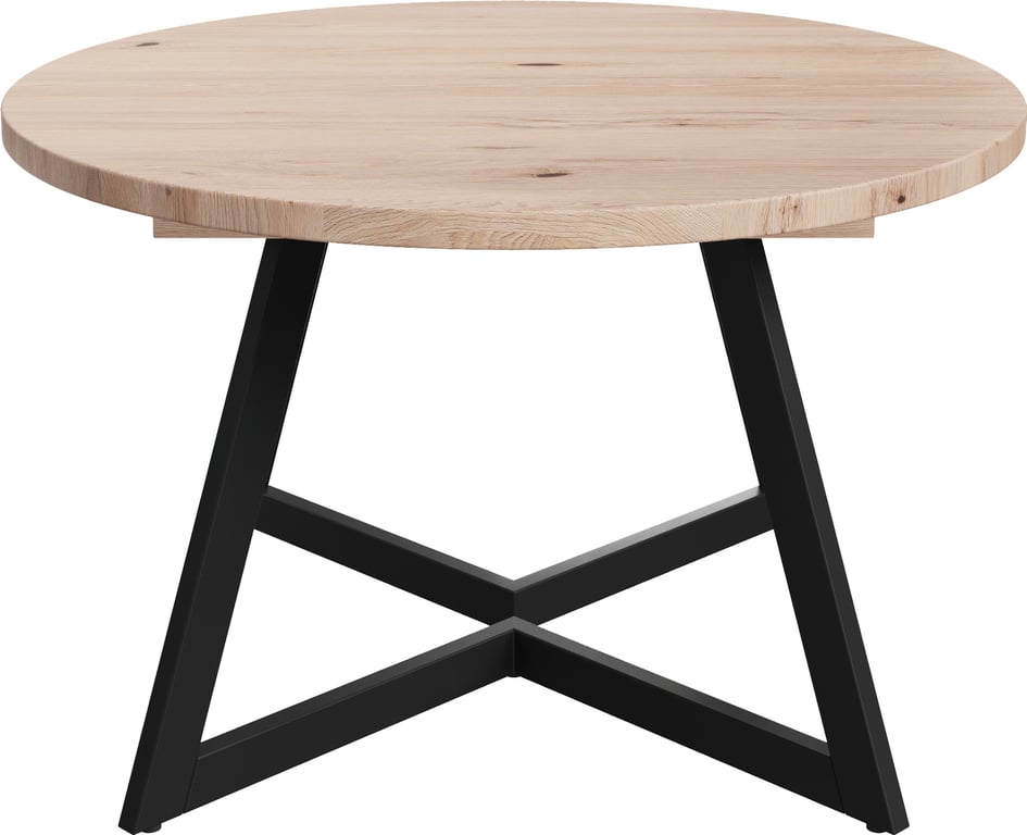 Embla spisebord rundt Ø 120 cmhvitoljet heltre eik med metallunderstell