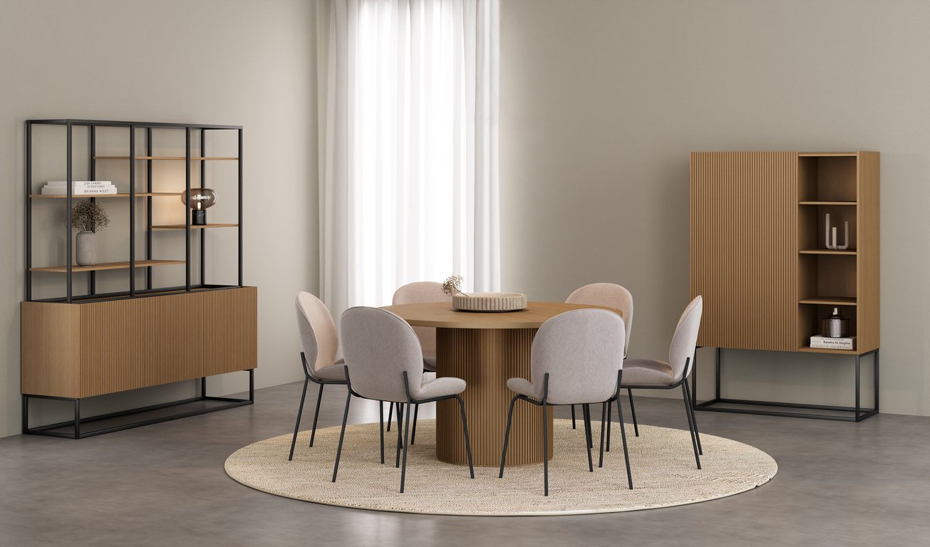 Linea spisebord rundt Ø 138 cm m/uttrekk for opptil 4 plater, natur oljet