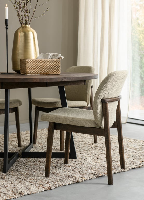 Owen spisestol levers ferdig montert med polstrert sete og rygg. Heltre eik og med en god komfort. Fås i mange tekstil, farger og trefarger.
