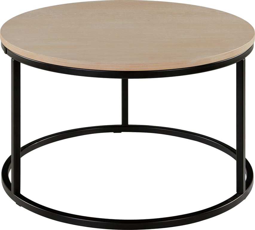 Nobel® sofabord har et moderne og stilrent uttrykk med sort metallramme og rund topp. Den åpne konstruksjonen gir et lett preg og mulighet for å skyve et mindre bord under.