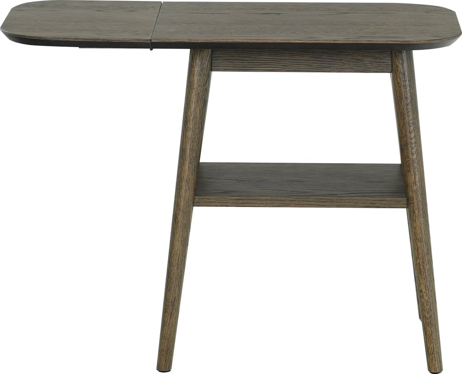 Karmøy sofabord med hylle er et elegant tilskudd til stuen, med sitt stilrene formspråk og praktiske utforming. Det avrundede designet gir bordet et luftig uttrykk, mens den ekstra hyllen under bordplaten gir plass til oppbevaring.