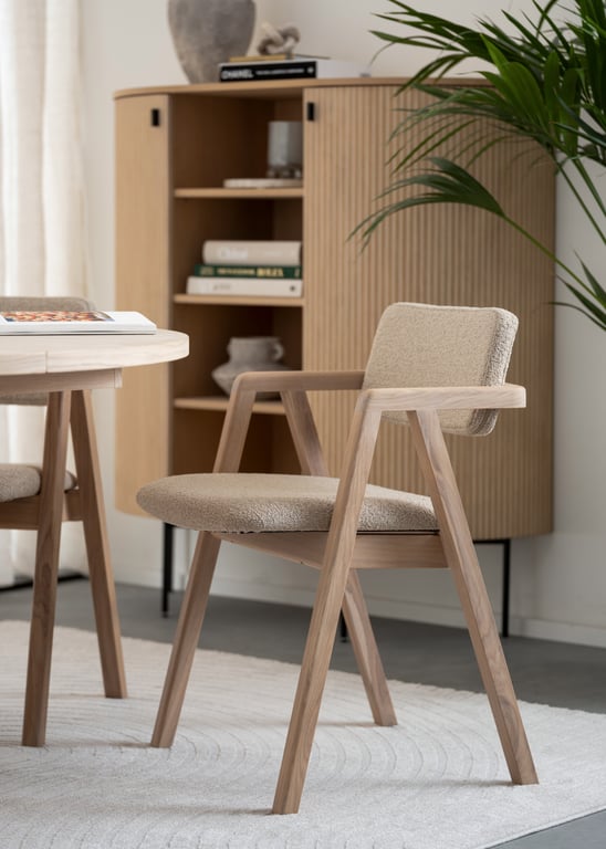 Linea buet høy skjenk er en ferdigmontert høy skjenk med 2 dører som har softclose-funksjon. I midtseksjonen har den en åpen løsning med trehyller.