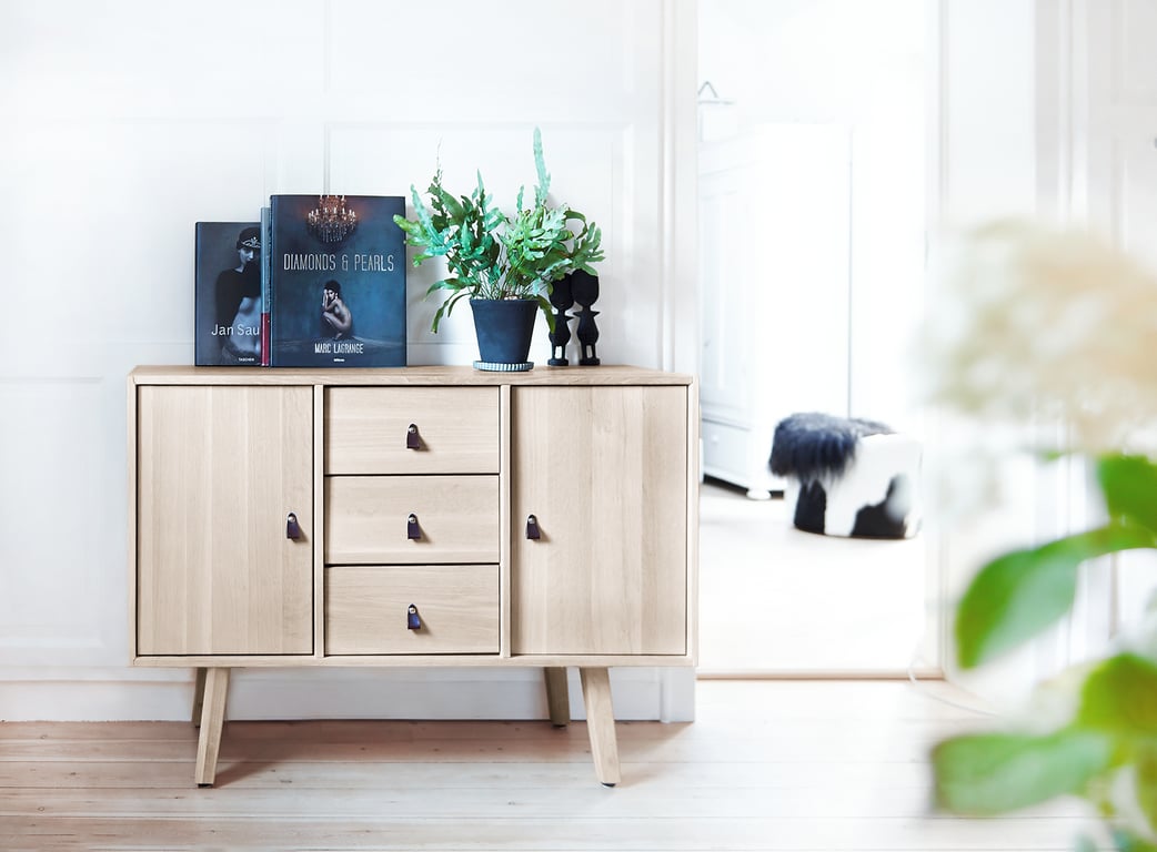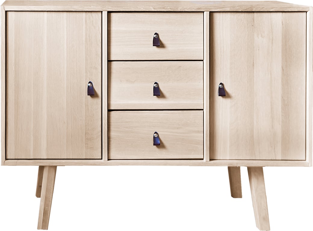 Birk Skjenk 100x74x40 cm med 2 rillede dører, eik / hvit olje