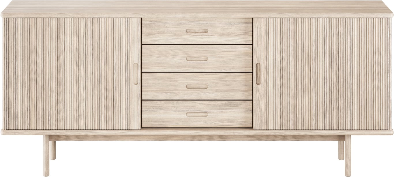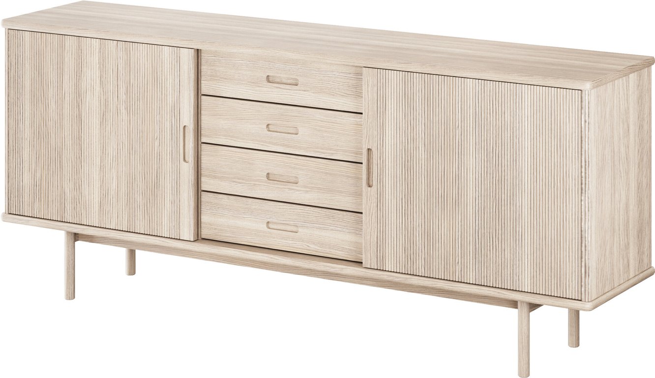 Birk Skjenk 220x76x40 cm med 3 rillede skyvedører, eik / naturolje