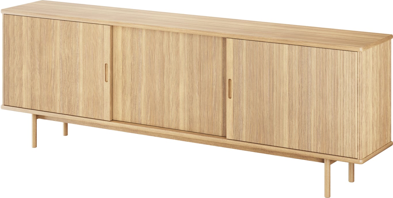 Birk Skjenk 220x76x40 cm med 3 rillede skyvedører, eik / hvit olje