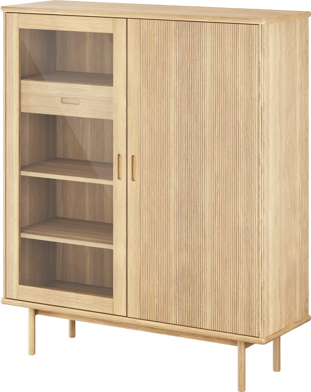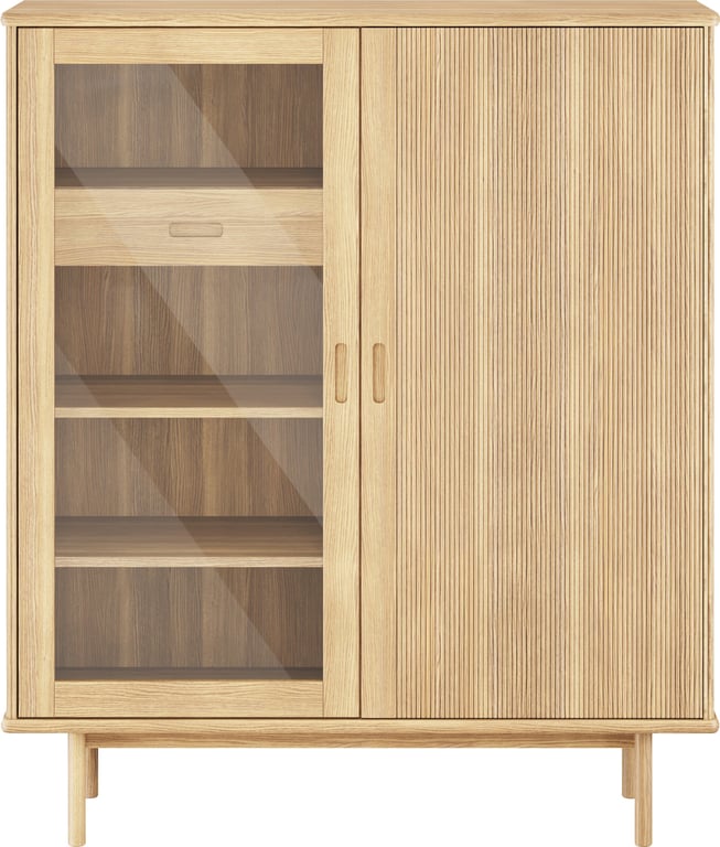 Birk Høyskap 120x140x40 cm med 1 rillet tredør og en glassdør, eik / hvitolje