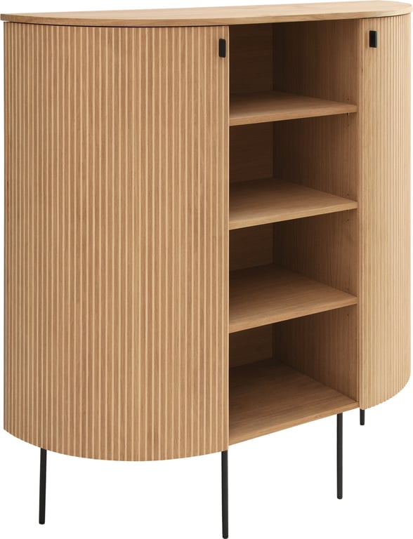 Birk Høyskap 120x140x40 cm med 2 rillede dører, eik / hvitolje