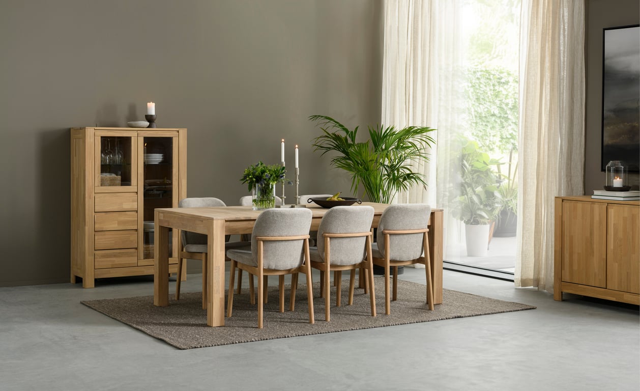 Lugano er en allsidig og elegant møbelserie i heltre eik som kombinerer moderne design med tidløs kvalitet. Serien inkluderer spisebord, skjenker, vitrineskap, TV-benk og sofabord. Du kan velge mellom flere naturlige oljefarger.