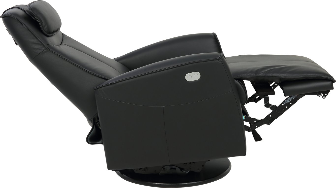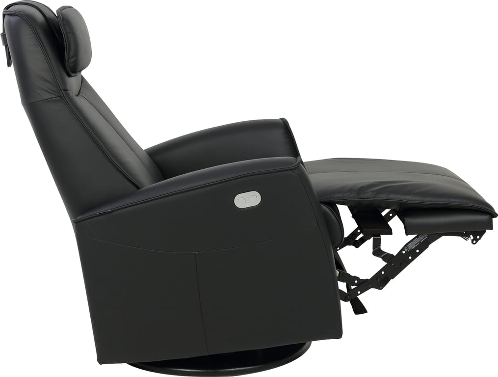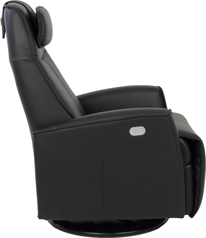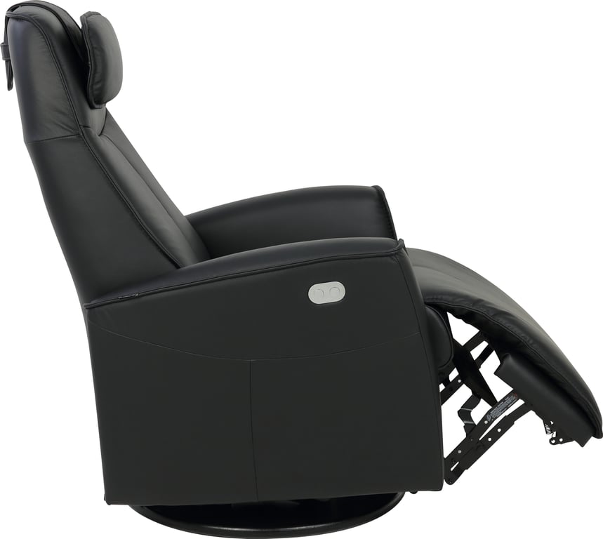 Komfortabel og plassbesparende elektisk recliner med luksus og funksjonalitet i ett. Denne stilrene hvilestolen har elektrisk regulering av rygg, fothviler og nakkestøtte, slik at du enkelt finner den perfekte sittestillingen med god støtte for korsryggen. Stolen har sving-, glide- og gyngefunksjon, der gyngen kan låses med en praktisk spak på baksiden. Med justerbar nakkepute og ergonomisk design får du maksimal komfort – uansett hvor du plasserer stolen.