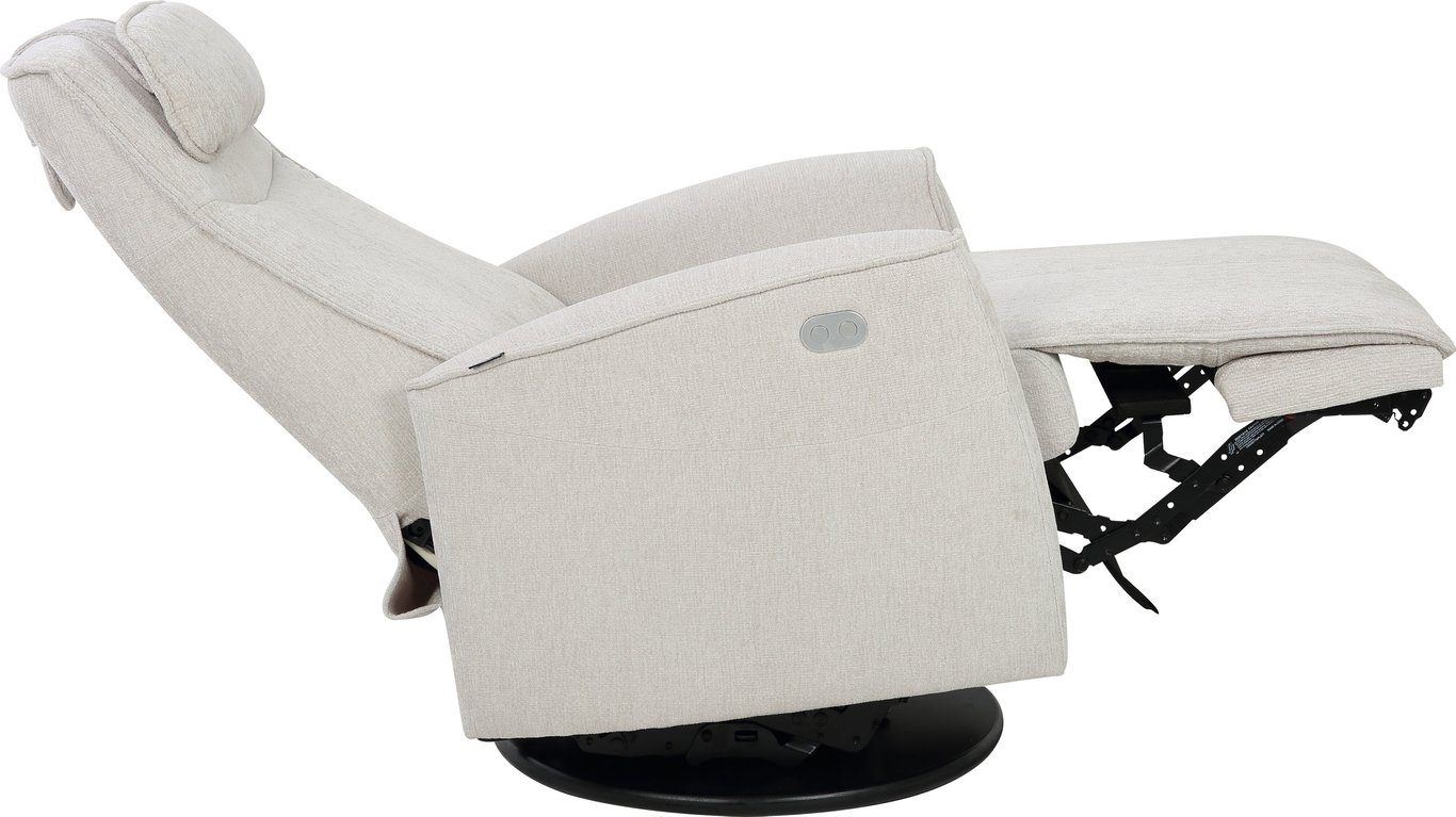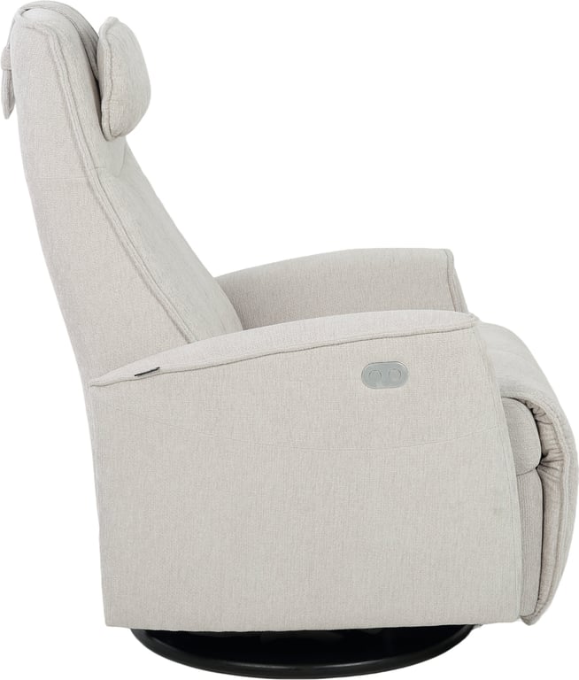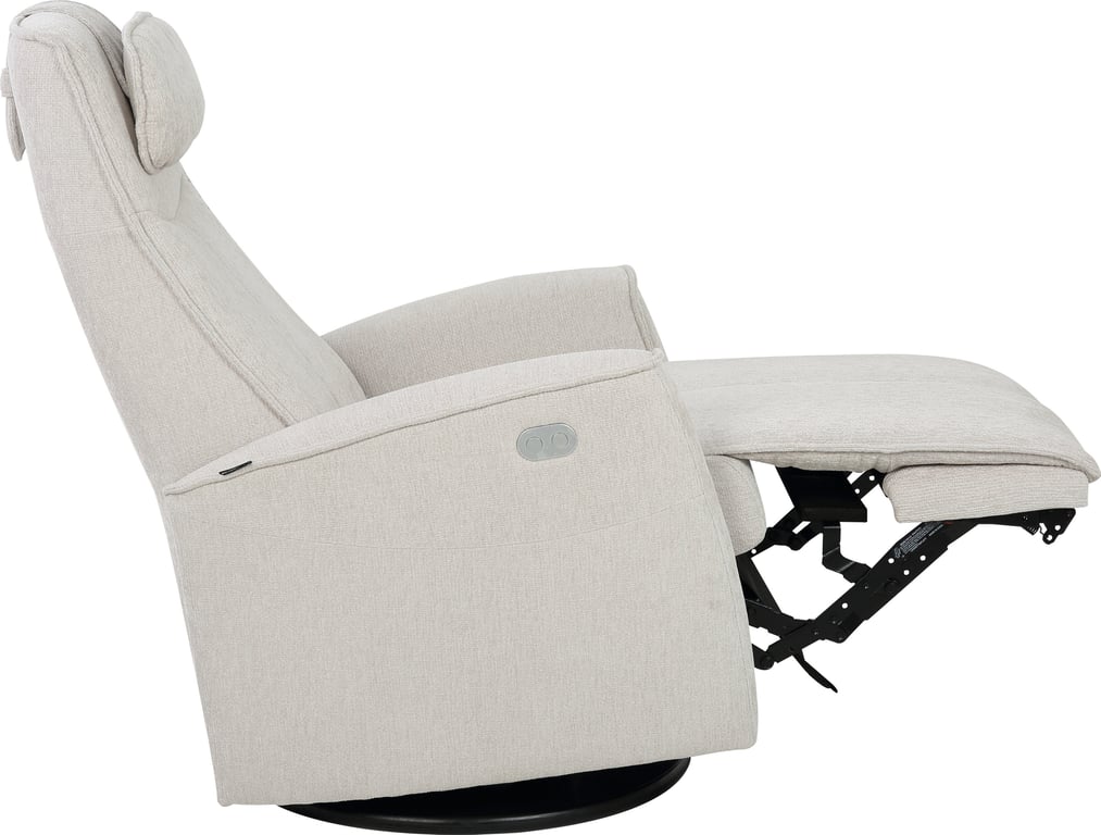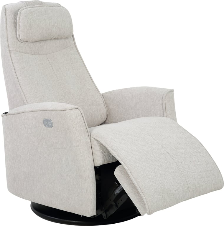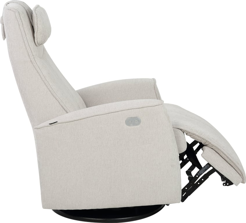 Komfortabel og plassbesparende elektisk recliner med luksus og funksjonalitet i ett. Denne stilrene hvilestolen har elektrisk regulering av rygg, fothviler og nakkestøtte, slik at du enkelt finner den perfekte sittestillingen med god støtte for korsryggen. Stolen har sving-, glide- og gyngefunksjon, der gyngen kan låses med en praktisk spak på baksiden. Med justerbar nakkepute og ergonomisk design får du maksimal komfort – uansett hvor du plasserer stolen.