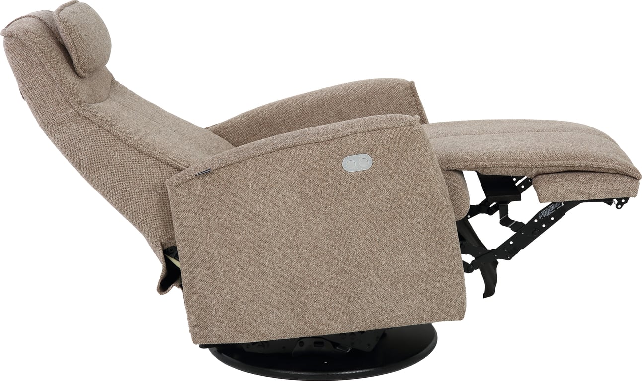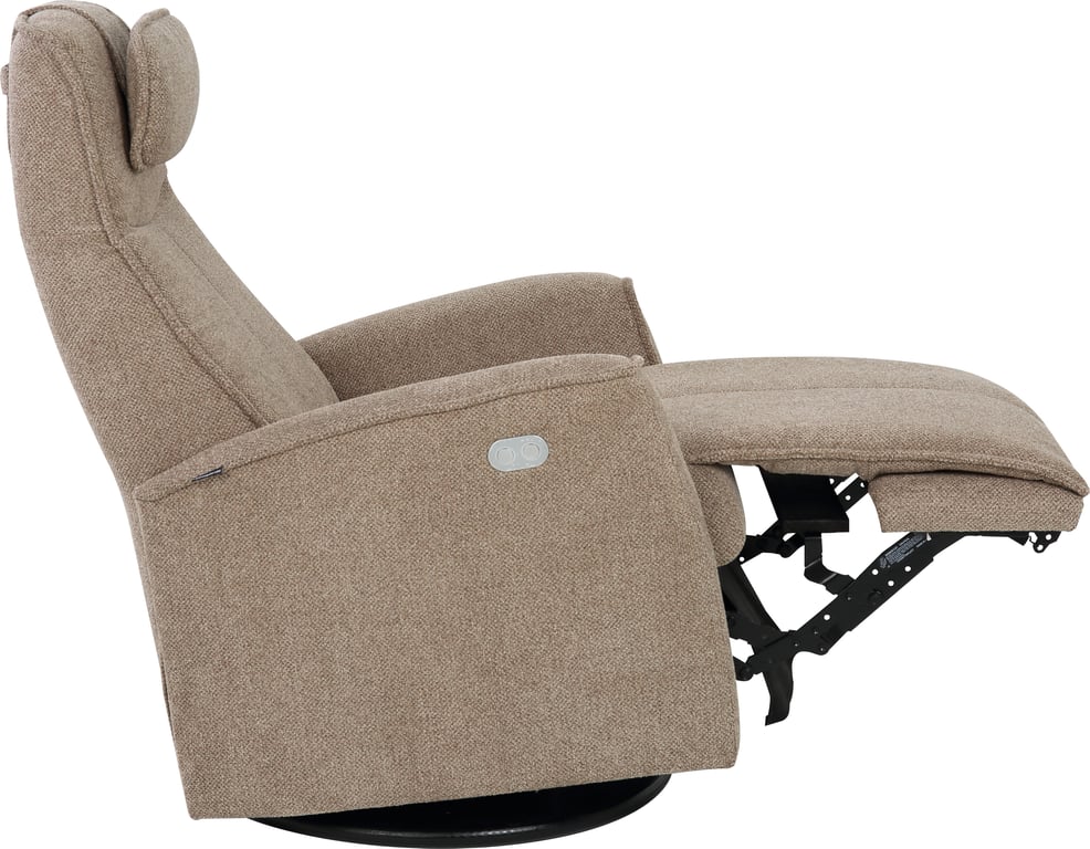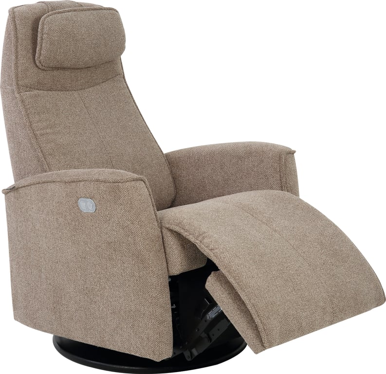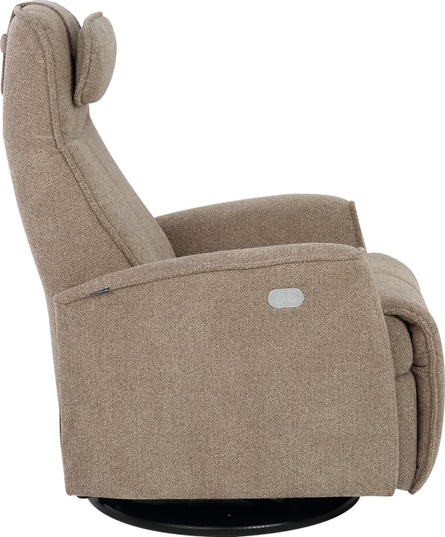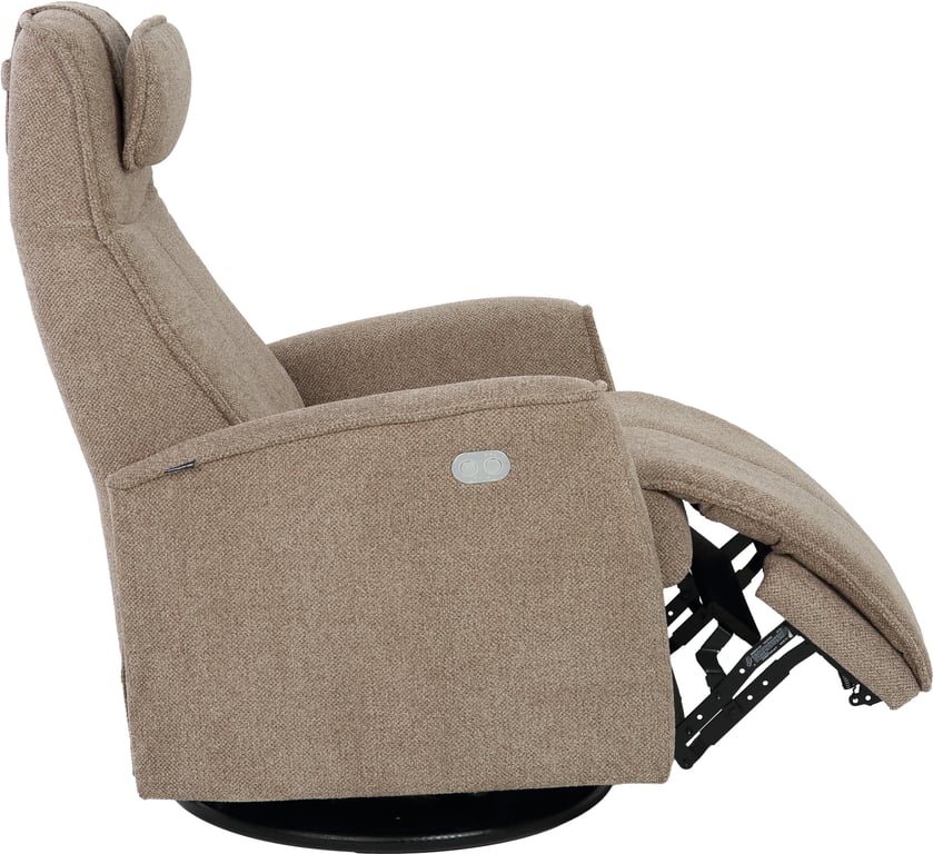 Komfortabel og plassbesparende elektisk recliner med luksus og funksjonalitet i ett. Denne stilrene hvilestolen har elektrisk regulering av rygg, fothviler og nakkestøtte, slik at du enkelt finner den perfekte sittestillingen med god støtte for korsryggen. Stolen har sving-, glide- og gyngefunksjon, der gyngen kan låses med en praktisk spak på baksiden. Med justerbar nakkepute og ergonomisk design får du maksimal komfort – uansett hvor du plasserer stolen.