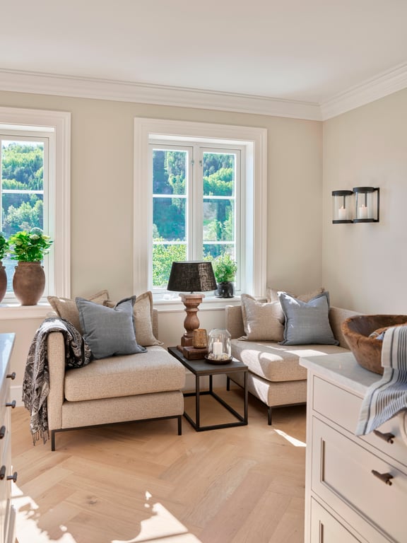 Nobel® er en serie stue, spisestue – og soveromsmøbler for et tidløst, vakkert og helhetlig hjem. De nøye utvalgte materialene og tekstilene gjør at møblene passer like godt inn på hytta som i hjemmet. Basismøblene leveres i tre utførelser: hvitoljet, smoked og svartbeiset finer med matt lakk.