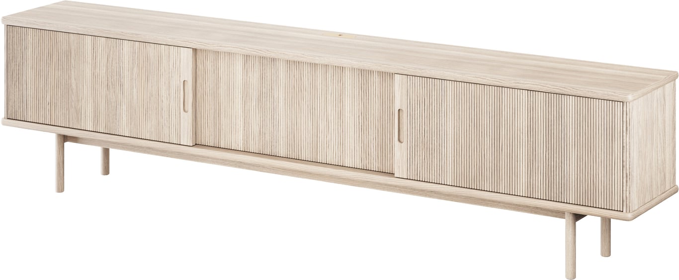 Birk TV-bord 220x55x35 cm med 2 rillede skyvedører, eik / naturolje