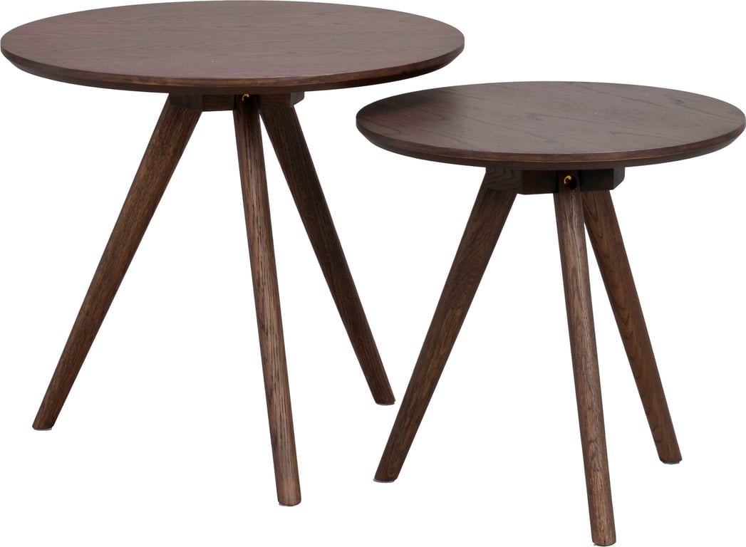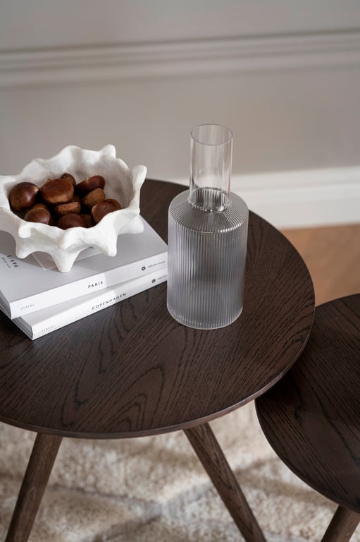 Yumi leveres også som rundt sofabord i Ø90 cm, ovalt sofabord 130x65 cm, og som settbord Ø50/H45 cm Ø40/H40 cm. Yumi settbord er praktiske og lette å plassere som avlastningsbord eller ekstrabord ved sofaen.